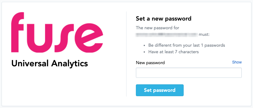 The Reset your password to Universal Analytics screen appears.In the Email field, enter the email address associated with your Fuse account.