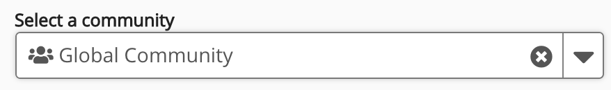 Select a community | Search for and select the community in which the event was created. To search for and select a community: