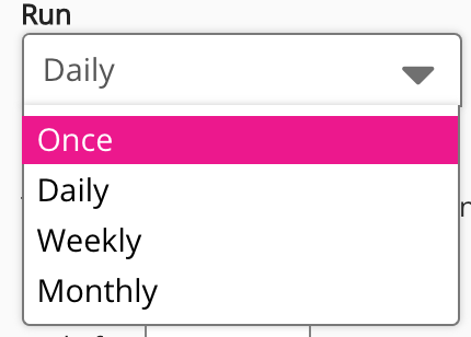 How often would you like to run this report? | Select how often you would like to run the report. From the Run drop down, select one of the following: