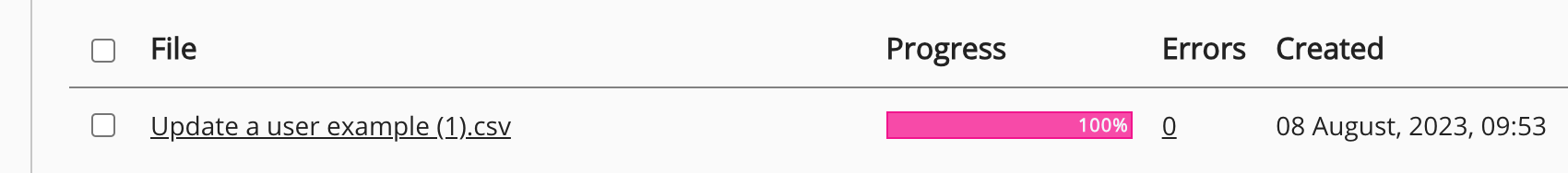 Created | Displays the date and time the CSV file began importing. For example, 01 July, 2019, 16:41. ![]() |