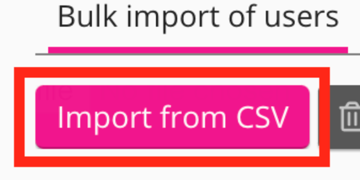 The Bulk import of users tab allows admins to do the following by importing a CSV file: