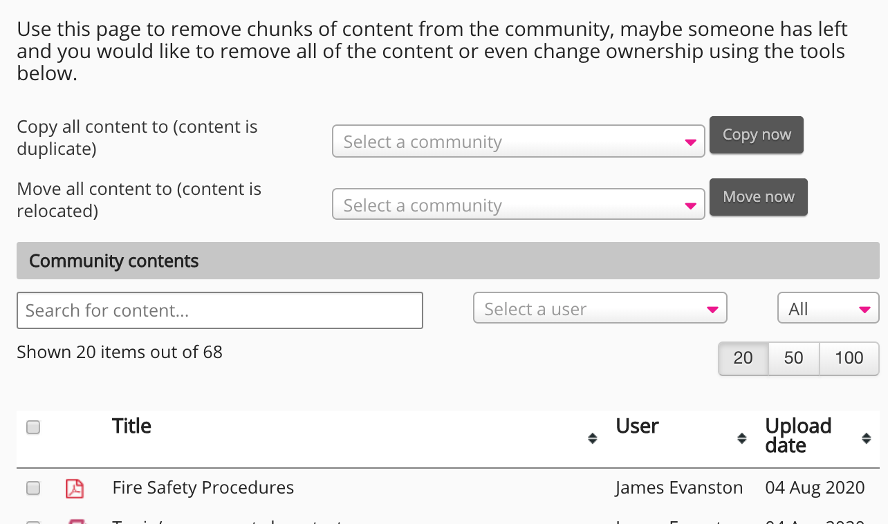 If an item of content is copied from the Finance community to the Human Resources community, it will appear in both communities at the same time, and will display the same content ID in the URL when viewing it in both communities.