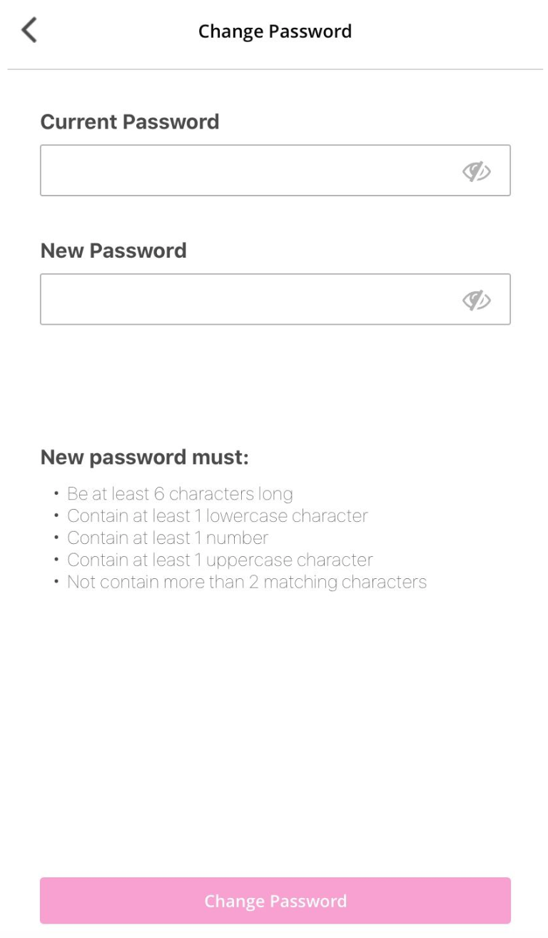 The Change Password screen allows you to change your Fuse password using the mobile app.