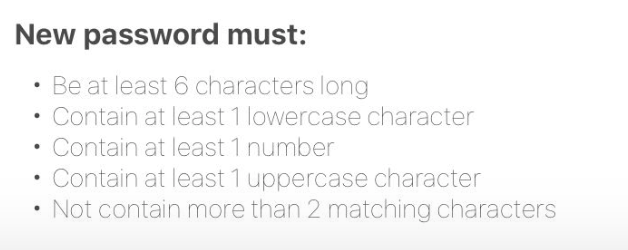 Your password might need to meet strict rules, set by your organisation. If your new password does not meet the rules listed, you will be unable to save it.