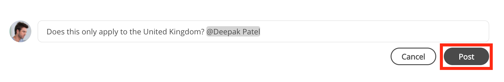 For example, an item of content might be available to users in two communities - the “Product” and “Finance”communities. Selecting “Product” means that the comment will only be visible to users who are members of this community. You can only post a comment to one community at a time. If you wish to post the same comment to additional communities in the list, you must repost the same comment in those communities separately.