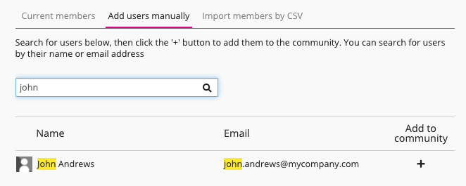 By audience | In most cases, users are dynamically added to communities based on the audiences they belong to. Audiences can be used to automatically determine the communities users belong to, based on the information in their user profile, such as their role, location, creation date, and so on. |