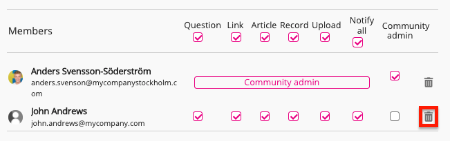 By community admin | A community admin can revoke a user’s membership under the Current members tab, in the Members section of the Community admin screen. This only applies to users that have: