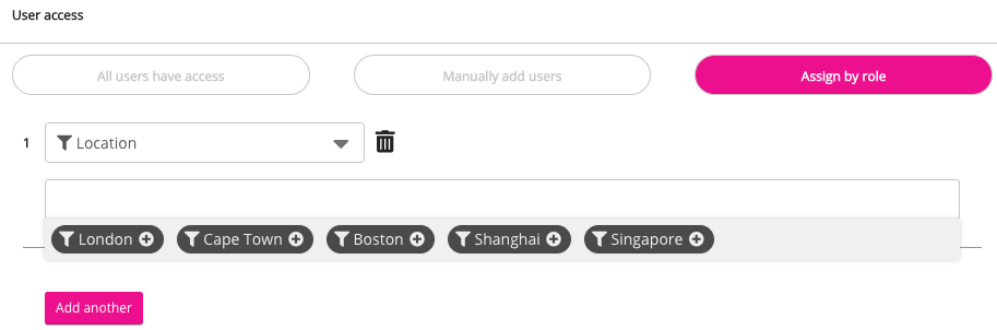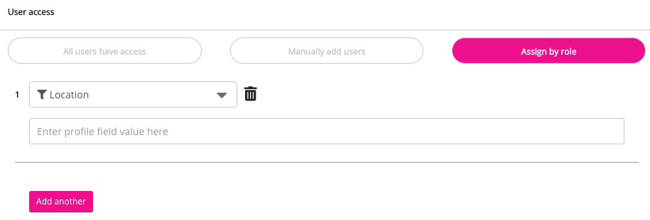 Assign by role | Only specific user types can access the observation. To specify the user types able to access the observation: