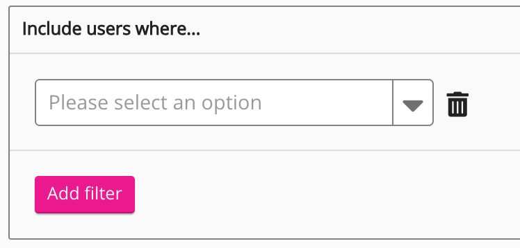 Another Please select an option dropdown appears.If necessary, repeat the steps above to create a new audience filter.