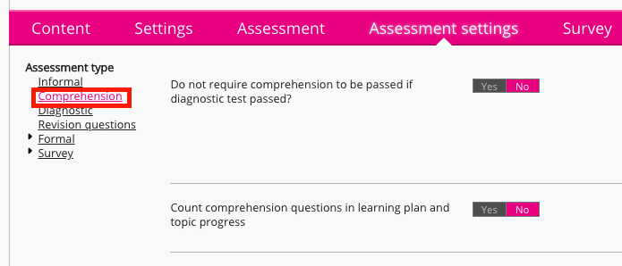 In the Enable assessment types section, select Comprehension.