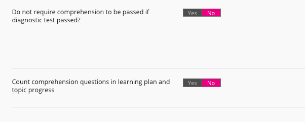 Select the desired configuration options for the comprehension assessment. For more information on the configuration options available, see Assessment settings.