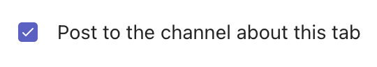 [Optional] Select the Post to the tab about this channel checkbox, if you want all users in the team to be informed once the tab has been created.