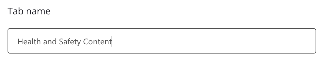 In the Tab name field, enter a name for the tab. Ensure that you give it a relevant and recognisable name. For example, if the tab shows a feed of content related to health and safety procedures in your organisation, you might called it Health and Safety Content.