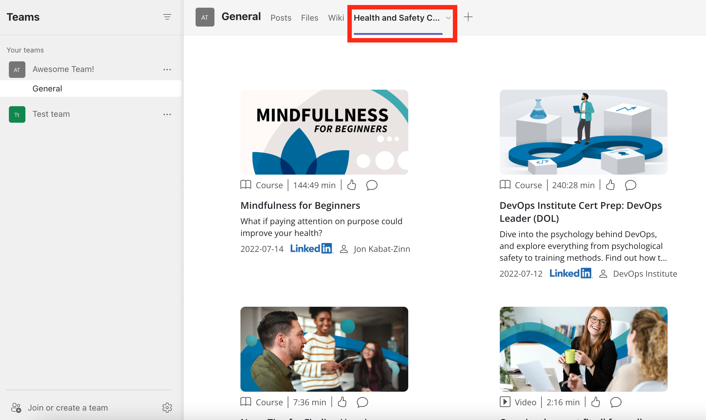 You can create custom tabs in Microsoft Teams containing live feeds of Fuse content. The content feed inside a tab is based on a set of Fuse search results, filtered down to display content that matches a particular criteria. You might create a tab that only shows content relevant to you and your team. For example, you might create a tab that returns articles from a particular community, that mentions “health and safety“. Once a feed has been configured, it refreshes each time you view it.