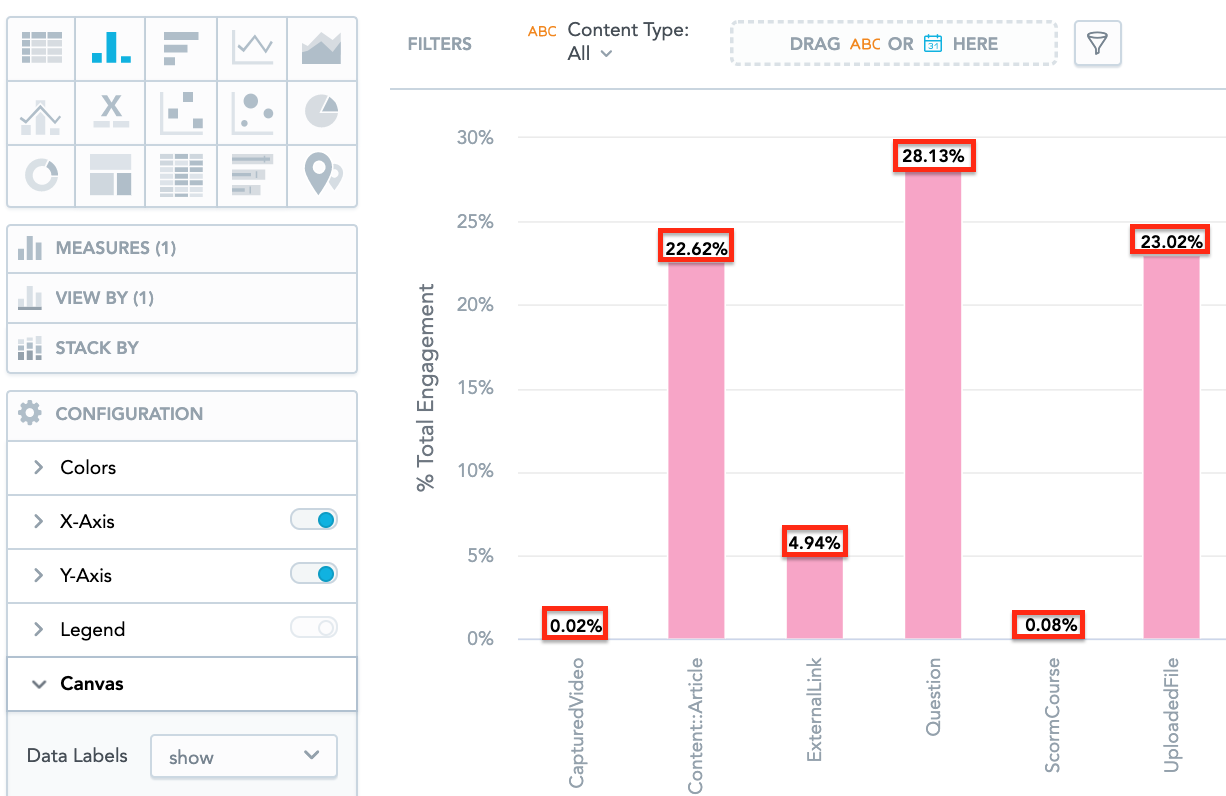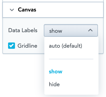 You can show and hide data labels that appear on certain parts of an insight, using the Data Labels dropdown.