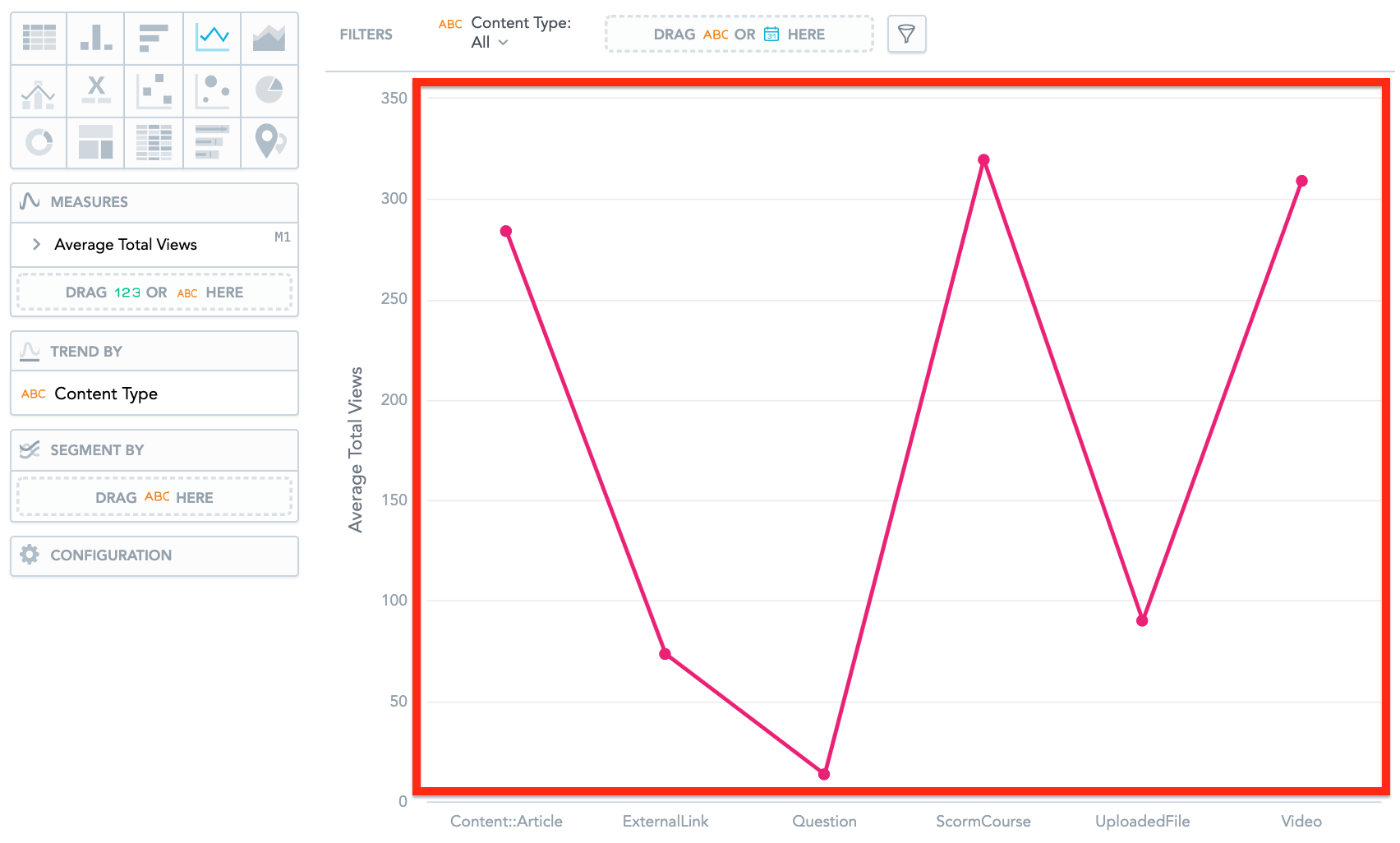 In the example below, show is selected, which means the data points on this line chart are visible.