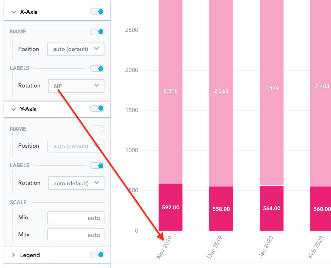 You can show or hide the name of the X-Axis, using the NAME toggle. Show/hide the X-Axis name.