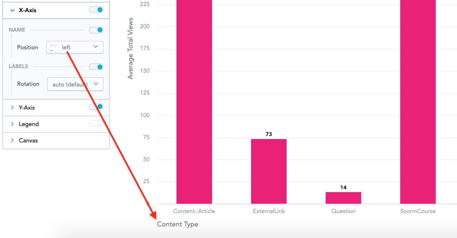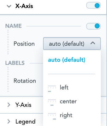 For example, if you select left, the name is positioned on the left hand-side of the X-Axis.