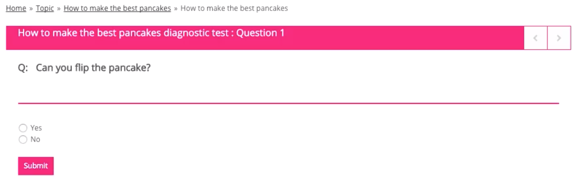 When the user first views the topic, they are immediately asked a series of questions taken from those attached to the topic: