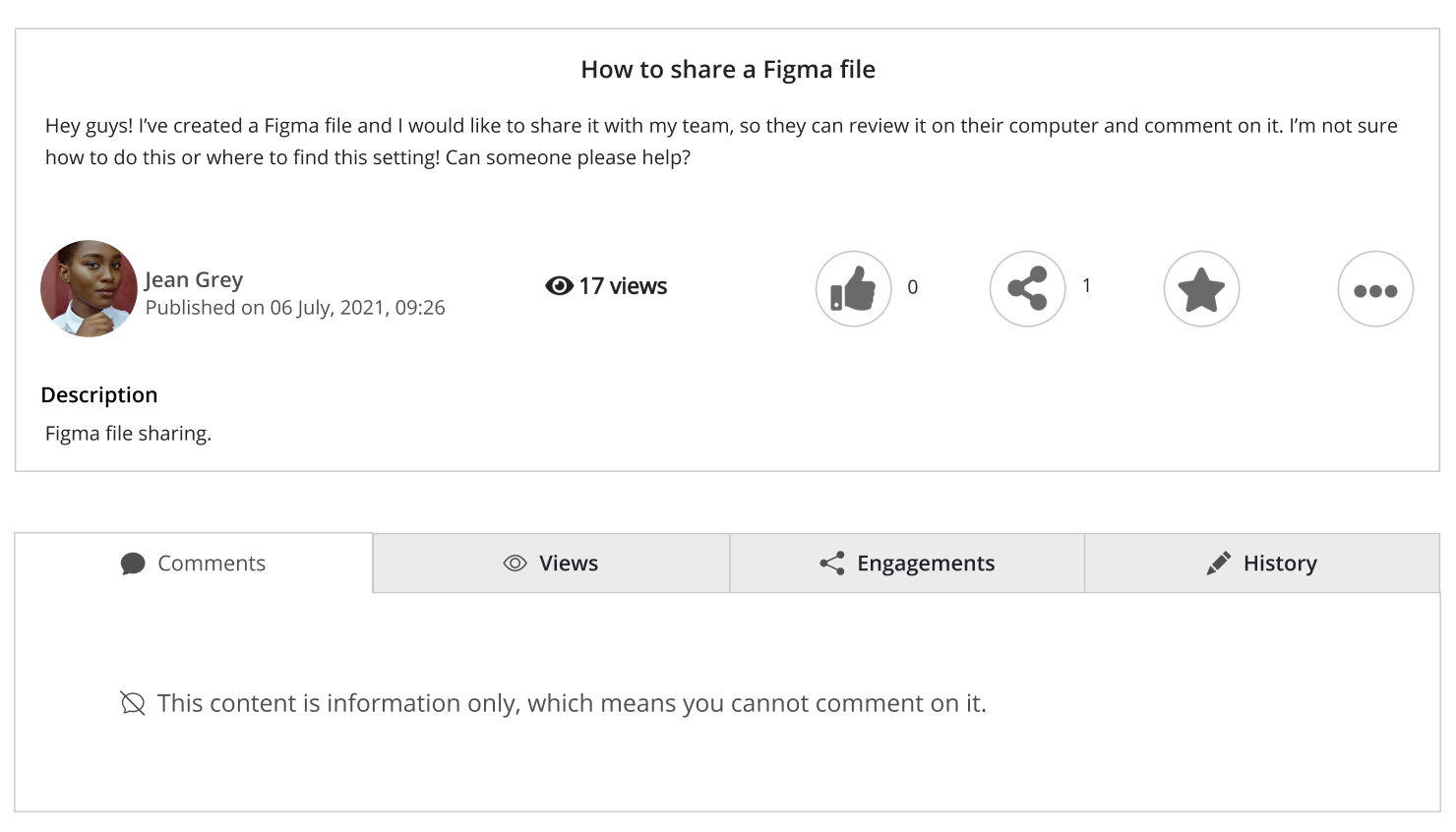 If you are the community admin or content owner, you can disable users' ability to comment on an item of content. By default, users are able to post comments and start conversations under an item of content, however, there may be occasions when you do not want them to do this.