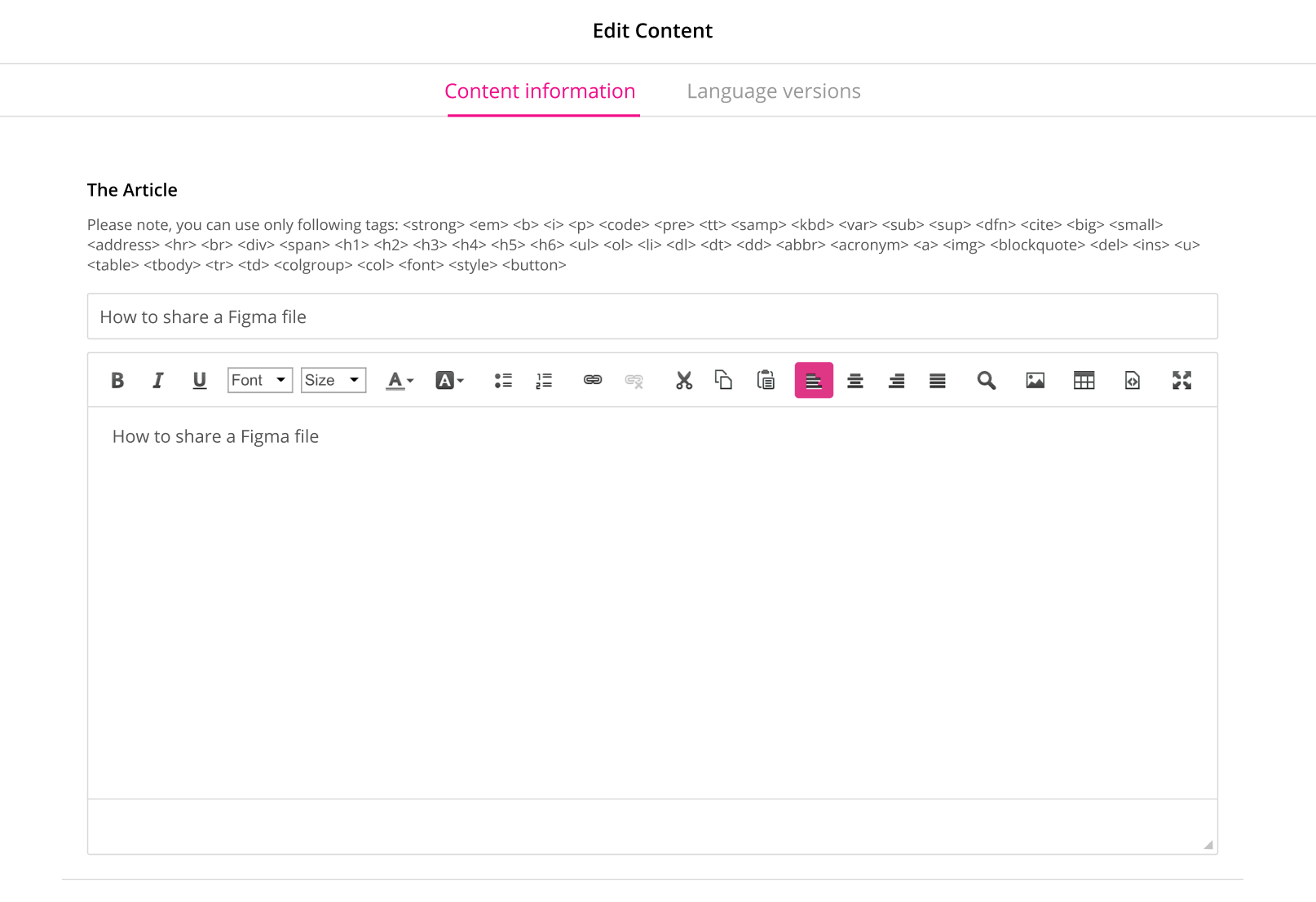 The Edit content screen appears.