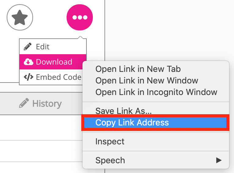 Alternatively, the full download link for the content can be copied, by right-clicking the Download option and selecting Copy Link Address: