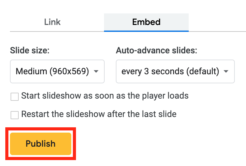 Google Slides usually display in the correct dimensions when embedded in Fuse. If necessary, you can adjust the dimensions, such as the height and width, for easier consumption.