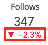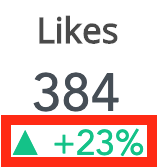 All trend indicators are based on a 30 day period. In the example below, the number of likes has increased by 23% when compared to the same time 30 days prior. This means the number of likes has increased by 88 when compared to 30 days before.