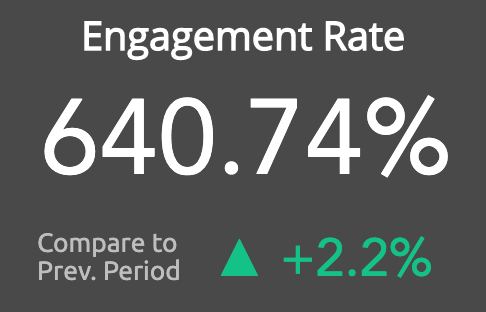 Total Engagements | Shows the total number of engagements (likes, shares, comments, and follows) in the Fuse instance, based on the filters selected in the Filter By section. In the example below, the total number of engagements have increased by 4.8% when compared to the same time 30 days prior. This means the number of engagements has increased by 74 compared to 30 days before. ![]() |