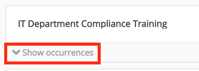Delete ![]() | To delete an occurrence from the events list: If an event only has one occurrence, deleting the occurrence deletes the entire event.