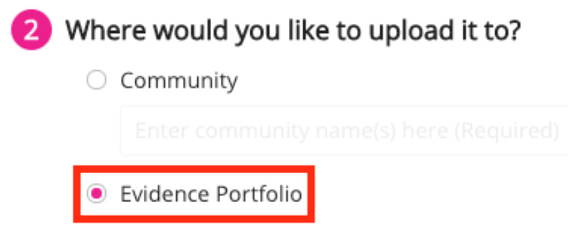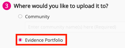 When posting an article, link or file, in the Where would you like to upload it to? section, select the Evidence Portfolio option.