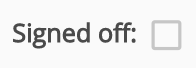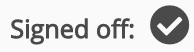 Signed off | To sign off content as a manager, select the Signed off checkbox. ![]() If the content has already been signed off by a manager, a tick symbol is displayed. ![]() |