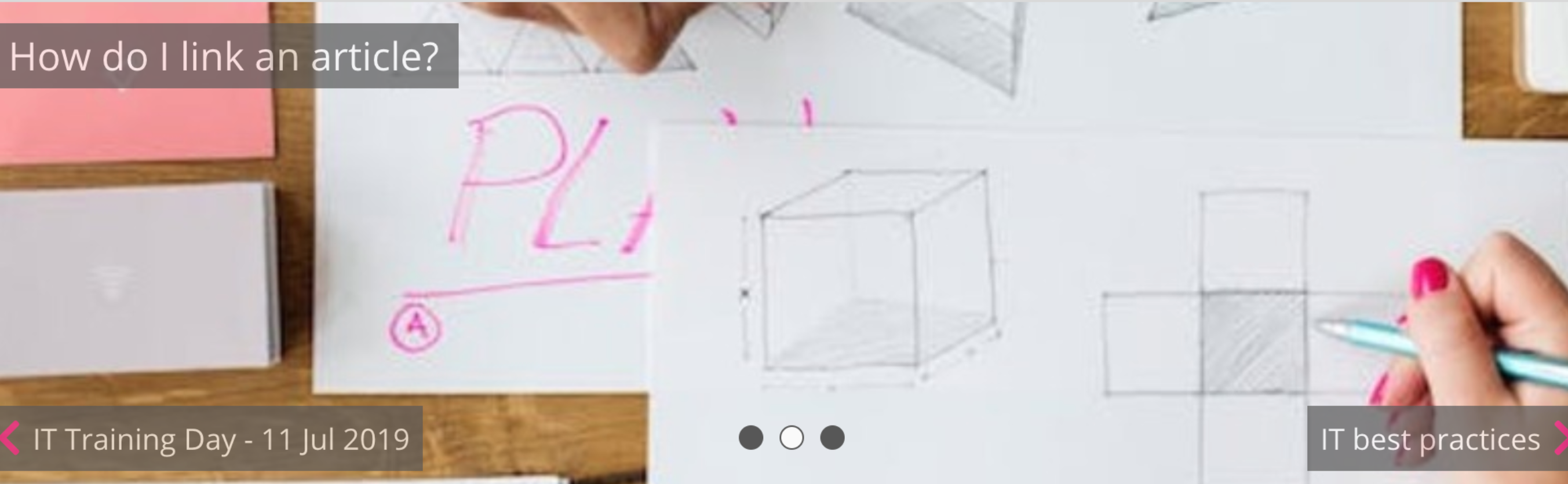 The featured content carousel is used to display items of content that your organisation thinks is important and that users should see, such as questions, videos, links, files, topics, and articles. Two different featured content carousels can be configured - one to be displayed on community landing pages, and another to be displayed on the Fuse homepage.