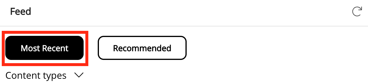 Most Recent | Shows content posted in communities you are a member of, with the most recently posted content at the top of the feed. ![]()