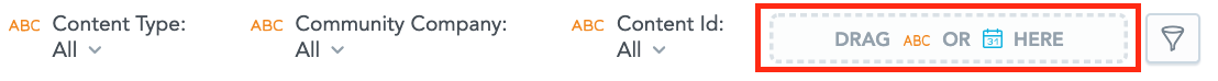Drag any of the available attributes from the Data Catalogue, into the Filters box. For example, you might want to filter an insight so that it only includes data related to certain communities, users, departments, job titles and so on.