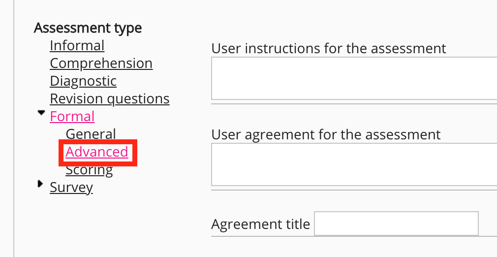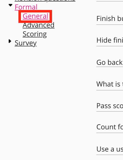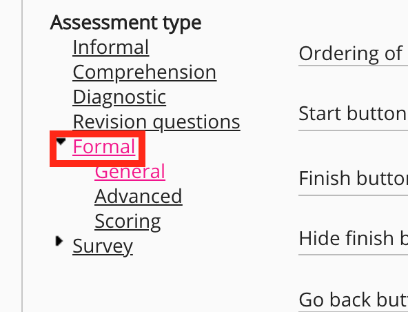 By default, formal assessments within recurrent learning plans do not automatically reset with the rest of the content. You must configure a formal assessment within a topic to reset, in the Formal section of the Assessment settings screen.