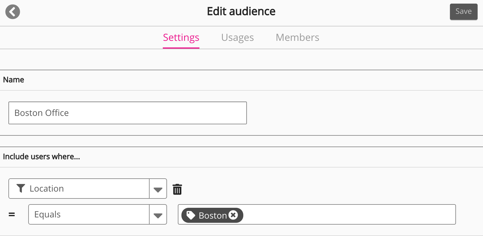 The Edit audience screen appears. - Click the Members tab.