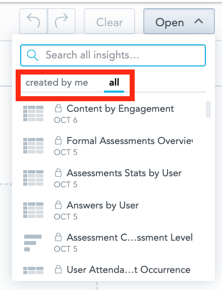 Clears your recent selections and creates a blank canvas, allowing you to create a new insight from scratch.