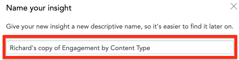 The Name your insight popup appears.In the Untitled insight field, enter a title.