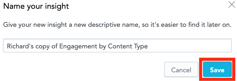 If you are creating a new insight from scratch or you have made changes to an existing insight, you will also see a Save button, which allows you to save the changes.