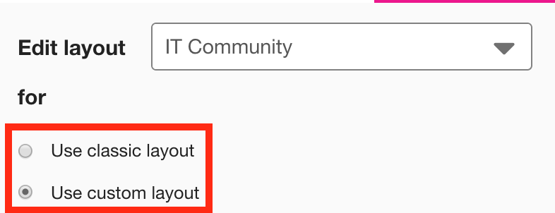From the Edit Layout for dropdown, select the layout for the relevant community homepage.