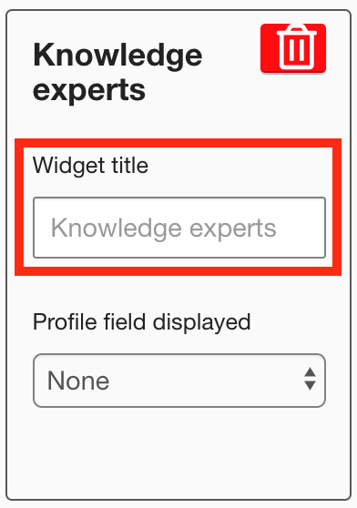 The Knowledge experts widget appears on the layout grid.[Optional] In the Widget title field, enter a custom title that will be displayed on the widget.