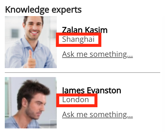 For example, if you select select Location, each Knowledge expert's location will be displayed under their name.
