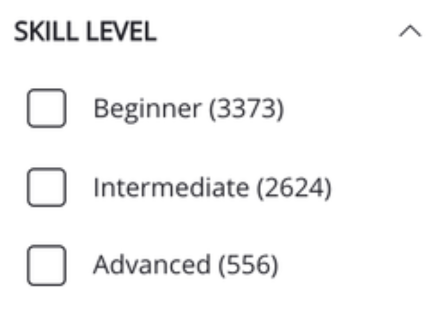 Skill Level | The skill level of the LinkedIn Learning content. For example, if you are looking for courses that are advanced level, select the Advanced option to only show advanced courses. The following options can be selected: