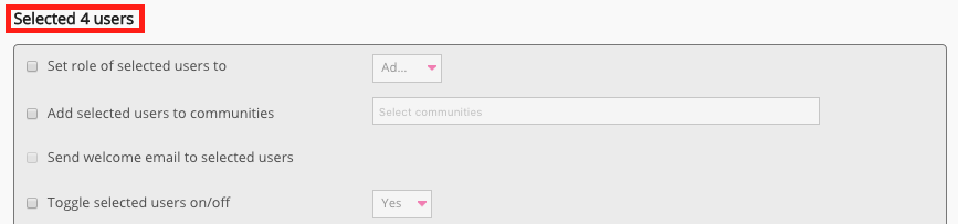 For example, if you select 4 users, the title of this section will change from Selected 0 users to Selected 4 users.