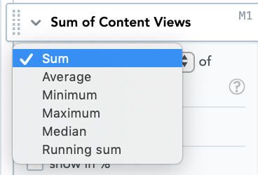 Show the sum, average, minimum, maximum, median, or running sum of the selected metric.