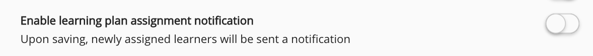 The Enable learning plan assignment notification is disabled so that users in the new community are not notified yet: