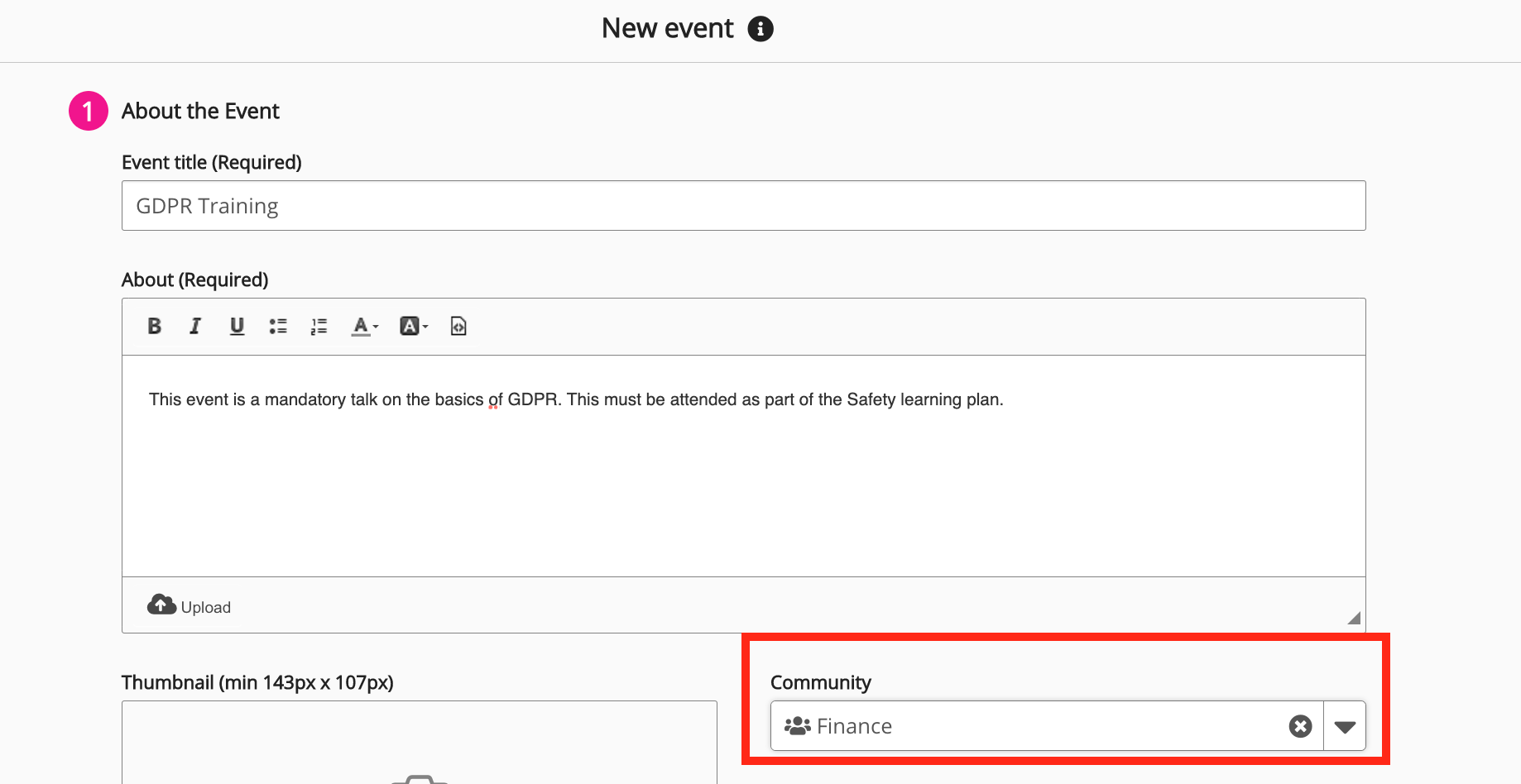 In the Events screen in the Admin Panel, recreate any events that are specific to the learning plan, but ensure they are in the new community.