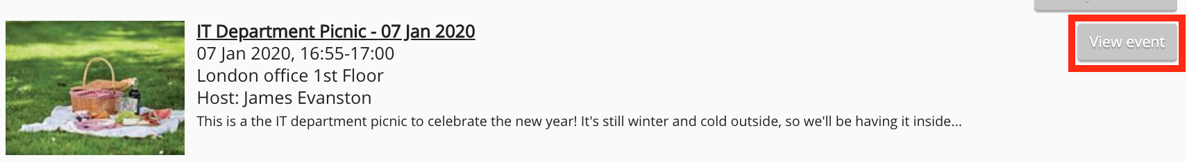 Events | A list of events you have attended or are due to attend in future. To view a specific event, click the View event button to the right of the event. ![]() To export the list of events as a CSV file, click the Export events button. ![]() You can switch between current and past events by selecting Attended or Attending on the filter above the list of events. |
