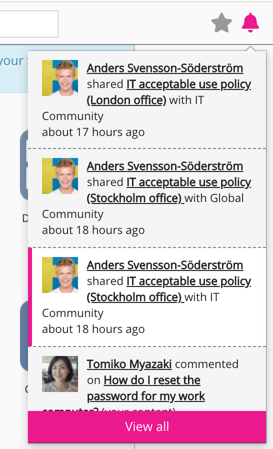 To view all of your notifications, click View all in the dropdown.